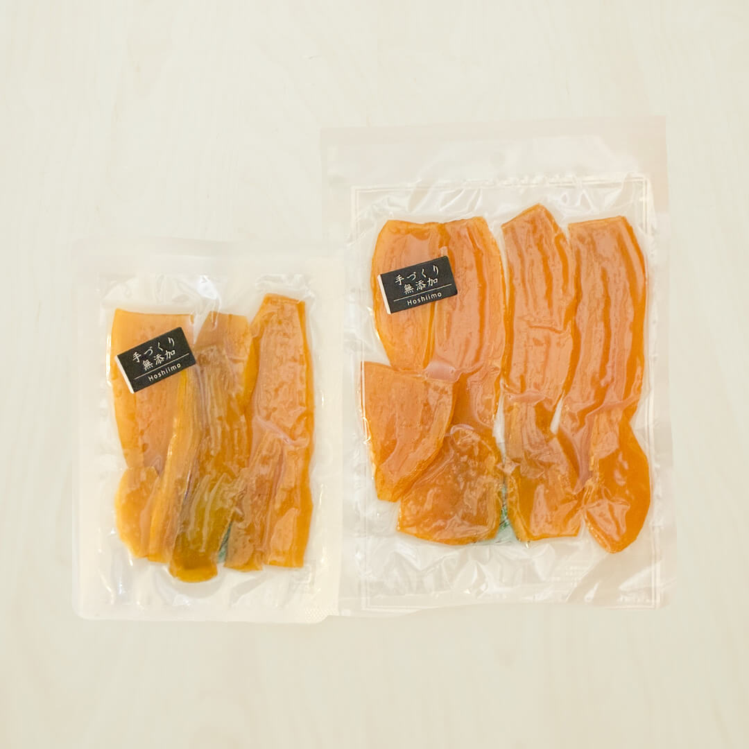 専用の機械で乾燥し乾きすぎないギリギリで乾燥しています。お芋の食感とお芋の甘さからくるべたつきを残した無添加の干しいもです。シルクスイートを使用しています。